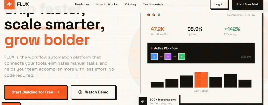 还有一个 workflow 生成平台的前端展示页,从头图简介、收费计划再到专家推荐语,每个版块的设计和配色都很赏心悦目,鼠标悬停等交互也很丝滑。