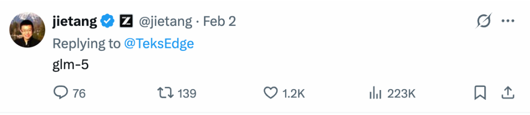 当然,还有一个重要原因是时间对上了。智谱 AI 在 2 月初官宣“计划在未来两周内发布新模型”,而唐杰老师发的帖子也是吊足了大家的胃口。