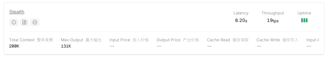其模型页面显示,Pony Alpha 具备 200K 的上下文窗口,最大输出 131K。