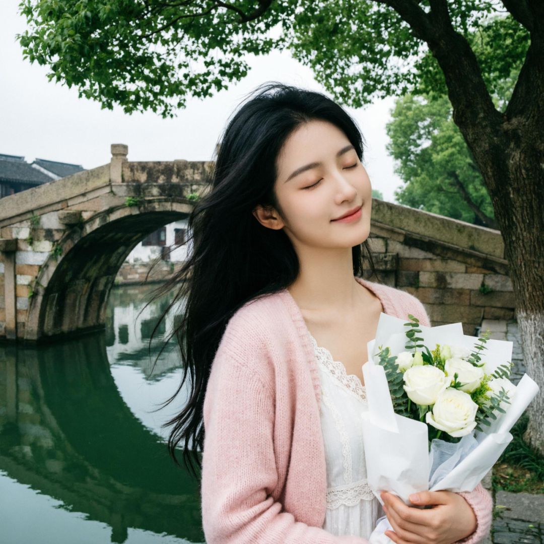 冬日北京的都市街景,青灰瓦顶、朱红色外墙的两间相邻中式商铺比肩而立,檐下悬挂印有剪纸马的暖光灯笼,在阴天漫射光中投下柔和光晕,映照湿润鹅卵石路面泛起细腻反光。左侧为书法店:靛蓝色老旧的牌匾上以遒劲行书刻着 " 文字渲染 "。店门口的玻璃上挂着一幅字,自上而下,用田英章硬笔,竖排写着“专业幻灯片 \n 中英文海报 \n 高级信息图”,右下角落款印章为‘1k token’朱砂印。店内的墙上,可以模糊的辨认有三幅竖排的书法作品,第一幅写着着 " 阿里巴巴 ",第二幅写着 " 通义千问 ",第三福写着 " 图像生成 "。一位白发苍苍的老人背对着镜头观赏。右侧为花店,牌匾上以鲜花做成文字 " 真实质感 ";店内多层花架陈列红玫瑰、粉洋牡丹和绿植,门上贴了一个圆形花边标识,标识上写着 "2k resolution",门口摆放了一个彩色霓虹灯,上面写着 " 细腻刻画人物自然建筑 "。两家店中间堆放了一个雪人,举了一老式小黑板,上面用粉笔字写着 "Qwen-Image-2.0 正式发布 "。街道左侧,年轻情侣依偎在一起,女孩是瘦脸,身穿米白色羊绒大衣,肉色光腿神器。女孩举着心形透明气球,气球印有白色的字:" 生图编辑 \n 二合一 "。里面有一个毛茸茸的卡皮巴拉玩偶。男孩身着剪裁合体的深灰色呢子外套,内搭浅色高领毛衣。街道右侧,一个后背上写着 " 更小模型,更快速度 " 骑手疾驰而过。整条街光影交织、动静相宜。