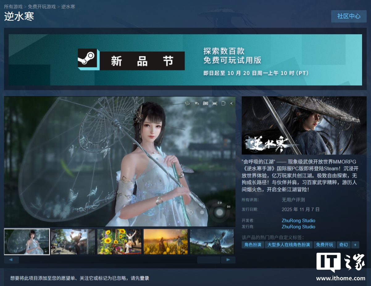 10 月 18 日消息,网易游戏旗下《逆水寒》现已更新 Steam 商城页面,确认 11 月 7 日上线。