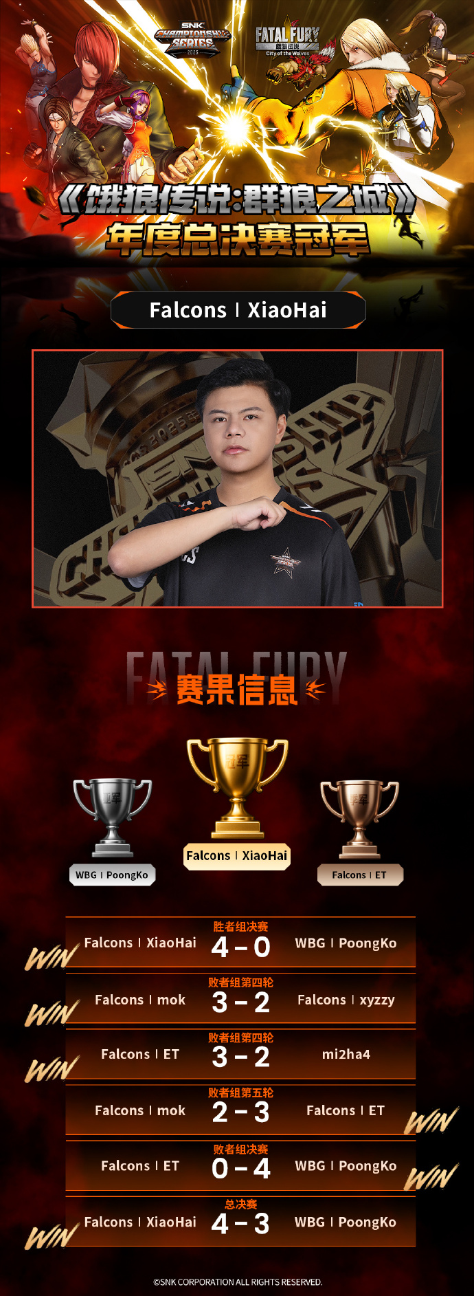 10 月 19 日消息,今日,SNK 官方在微博正式宣布“小孩”曾卓君夺得 SCS 2025《饿狼传说:群狼之城》项目年度总冠军。