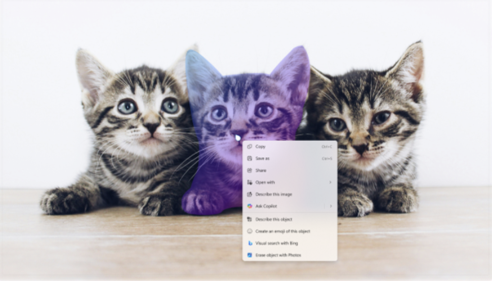 微软引入了一项名为“图像对象选择”的功能,允许用户在图片中精确选中具体对象,只需将鼠标悬停在图片上,即可预览可选择区域,实现“一键抠图”,将相应区域直接复制到其他应用,或提交给 Copilot 分析见解。