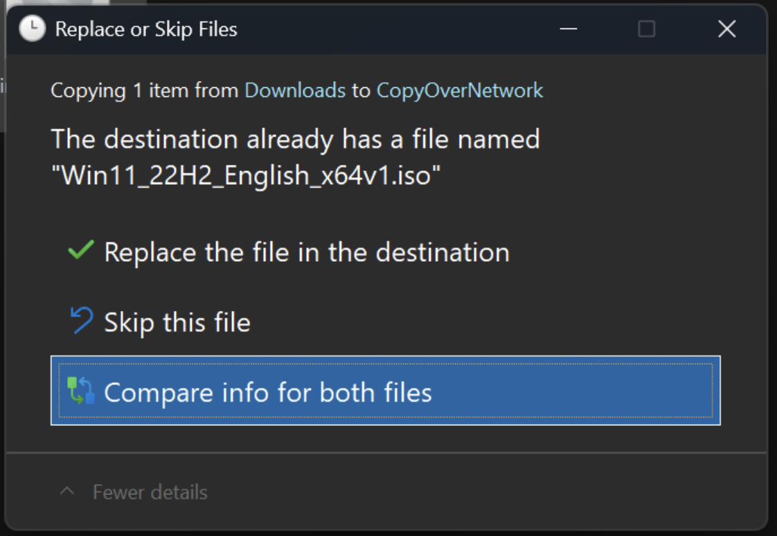 微软称文件资源管理器的深色模式体验获得了“显著优化”,如今复制、移动、删除等操作过程中的对话框均采用一致的深色样式;进度条、图表视图更新为统一配色;确认、跳过、覆盖、选择文件等对话框均采用统一暗色风格;多种确认与错误提示弹窗也同步更新。