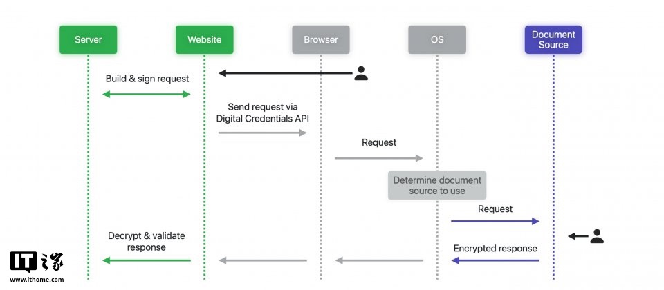 获悉,Safari 26 采用 W3C Digital Credentials API 作为 JavaScript 接口,数据请求与回传遵循 ISO / IEC 18013-5 与 18013-7 所定义的 mDocs 格式,并可在跨设备场景中配合 FIDO CTAP 运作,整个流程基于标准化加密与签章机制,有望取代传统的证件照上传与人工比对过程,可显著提升身份验证的一致性与可扩展性。