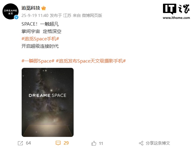 注意到,追觅在预热这款 Space 手机的时候用了“追觅发布天文级摄影手机”的话题,还宣称将“开启超级连接时代”。