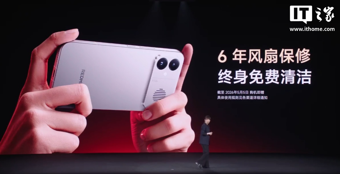 质保方面,REDMI K90 Max 的风扇采用了全金属轴承系统,5 月 5 日前购买可享 6 年风扇保修、终身免费清洁。