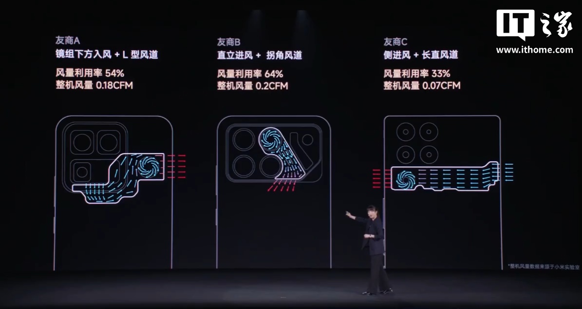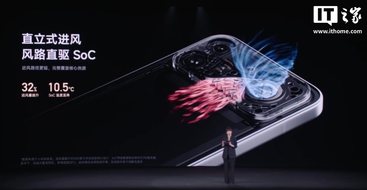 同时,这款手机还带有仿真涡流风道,减少路径弯折带来的乱流,风量利用率可达 78.6%,号称“散热效率疾速拉满”。