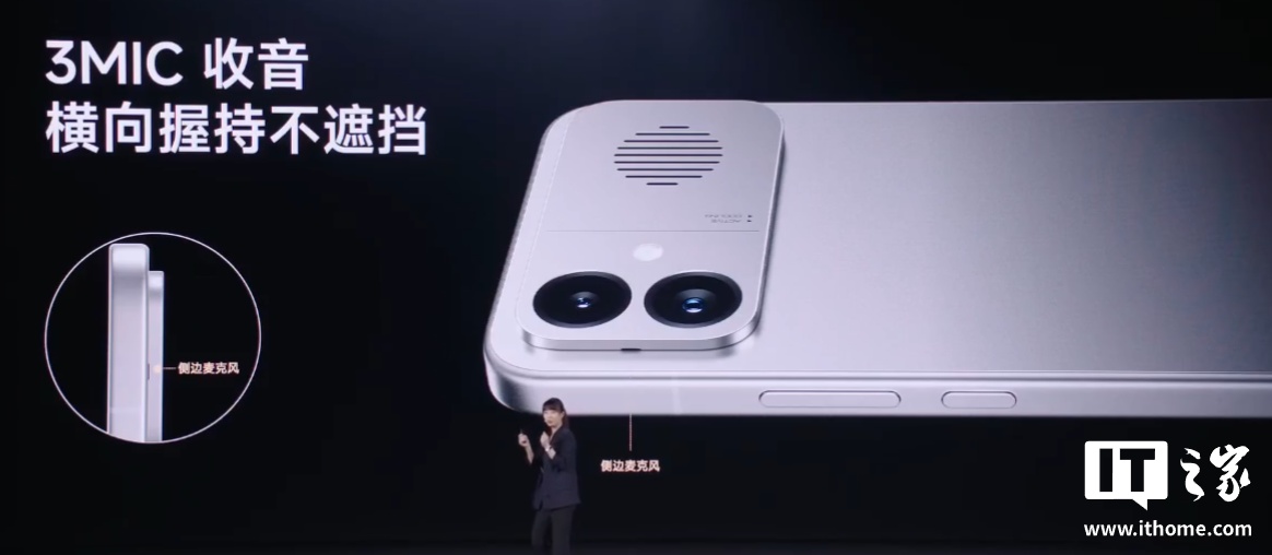 3 麦克风收音,横向握持不遮挡,两颗小米澎湃 T1+ 信号增强芯片
