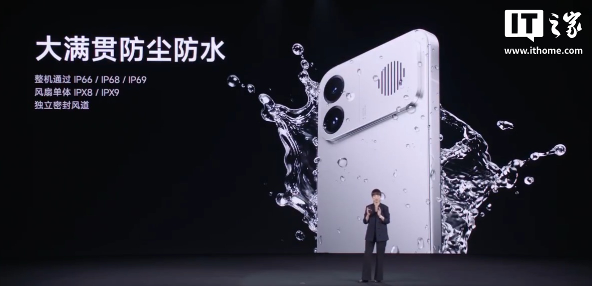 REDMI K90 Max 是小米首款内置风扇散热手机,搭载独立密闭风道、全金属轴承结构,支持 IP66/IP68/IP69 整机防尘防水,通过 5 万小时老化测试。